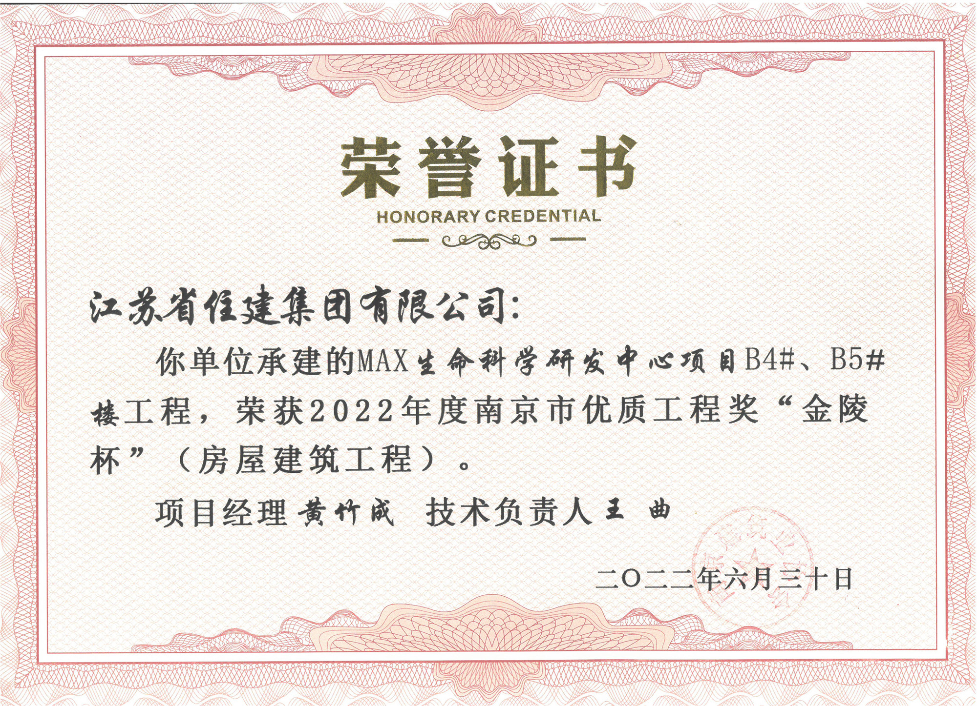 6月30日,南京建筑業(yè)協(xié)會(huì)正式發(fā)布2022年度南京市優(yōu)質(zhì)工程獎(jiǎng)“金陵杯”(房屋建筑工程)名單,其中,我司負(fù)責(zé)承建的MAX生命科學(xué)研發(fā)中心項(xiàng)目通過(guò)資料審核、現(xiàn)場(chǎng)檢查、評(píng)審獲得“金陵杯”殊榮。
