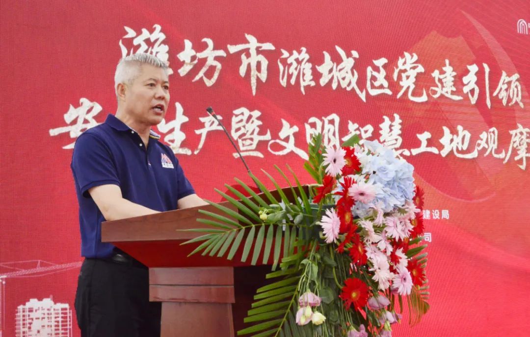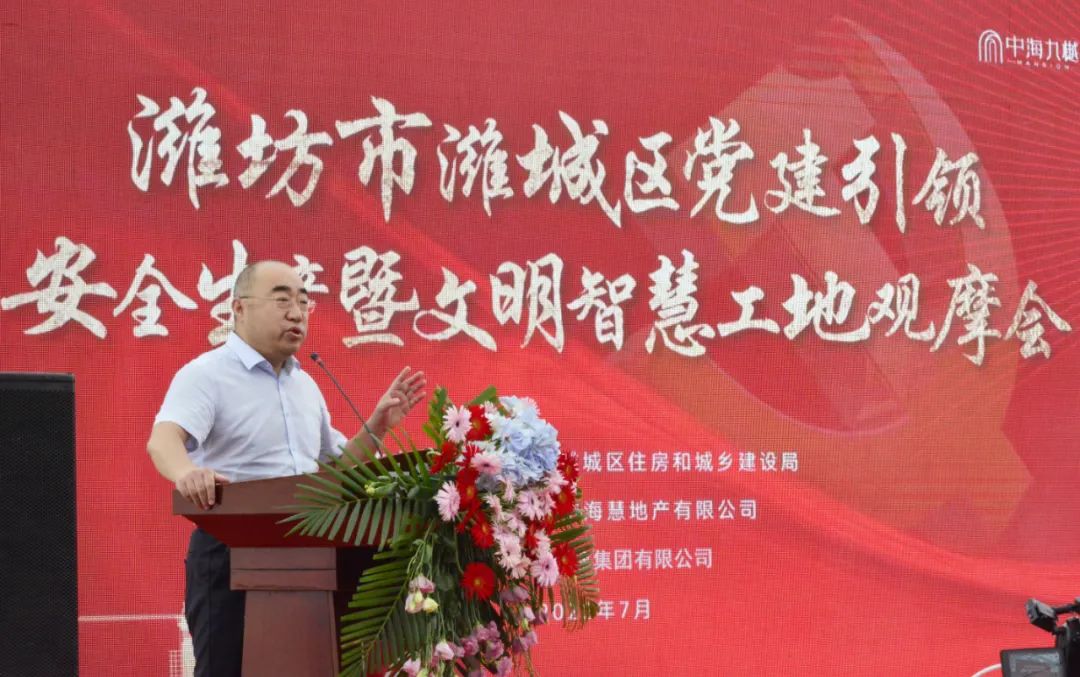 7月7日上午,濰坊市濰城區(qū)黨建引領(lǐng)--智慧工地現(xiàn)場(chǎng)觀摩會(huì)在由我司承建的濰坊中海九樾項(xiàng)目現(xiàn)場(chǎng)順利舉辦。濰坊市住建局黨組成員、濰坊市建筑業(yè)發(fā)展服務(wù)中心主任許增賢,濰坊市建筑業(yè)發(fā)展服務(wù)中心副主任孫學(xué)光,濰城區(qū)人民政府副區(qū)長劉新喜,濰城區(qū)住建局黨組書記、局長呂宏文,中海地產(chǎn)濰坊公司總經(jīng)理張超,江蘇省住建集團(tuán)常務(wù)副總經(jīng)理馬建軍以及市、區(qū)發(fā)展服務(wù)中心等領(lǐng)導(dǎo)及濰城區(qū)在建項(xiàng)目建設(shè)、監(jiān)理單位等共約300余人出席活動(dòng)。