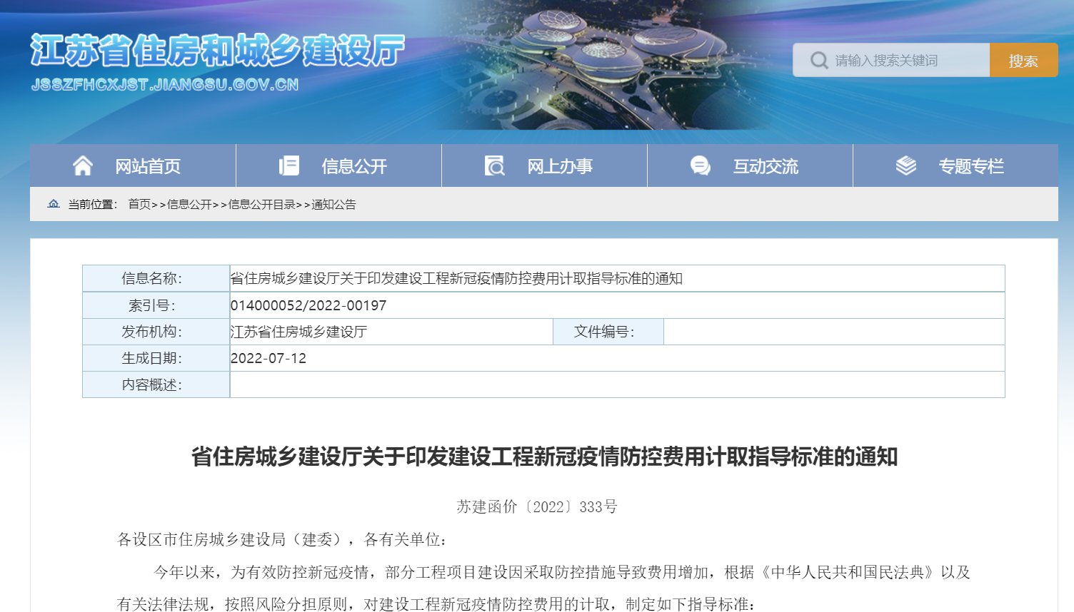 省住房城鄉(xiāng)建設(shè)廳關(guān)于印發(fā)建設(shè)工程新冠疫情防控費(fèi)用計(jì)取指導(dǎo)標(biāo)準(zhǔn)的通知