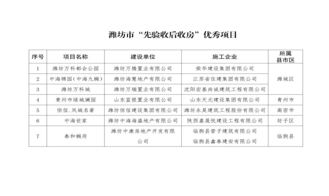 關(guān)注|江蘇住建濰坊中海項目榮獲濰坊市“先驗收后收房”優(yōu)秀項目!