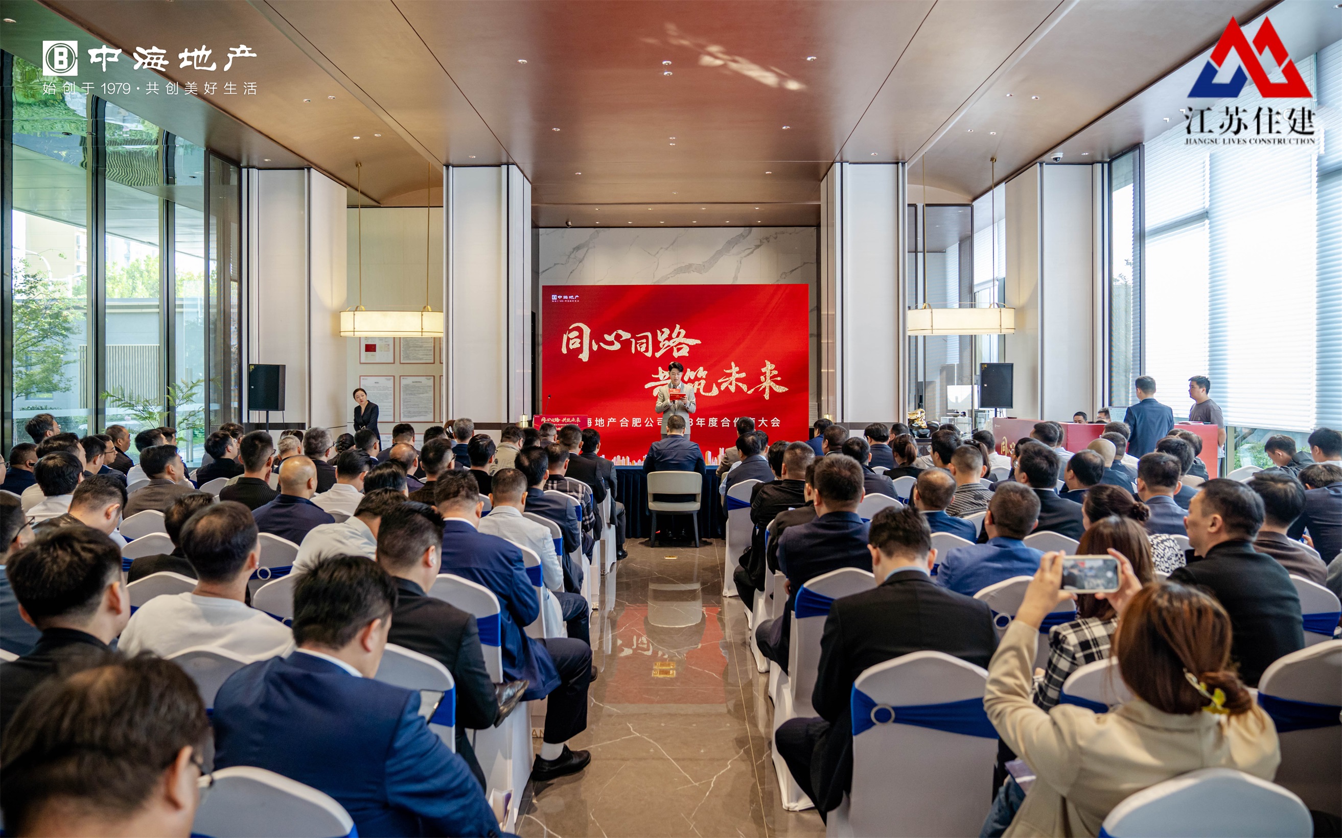 2023年10月20日,中海地產(chǎn)合肥公司2023年度合作商大會在中海臻如府順利舉行,江蘇省住建集團(tuán)副總經(jīng)理王曲受邀參加并代表我公司上臺領(lǐng)取由中海地產(chǎn)合肥公司頒發(fā)的“2023年度優(yōu)秀合作伙伴獎”。