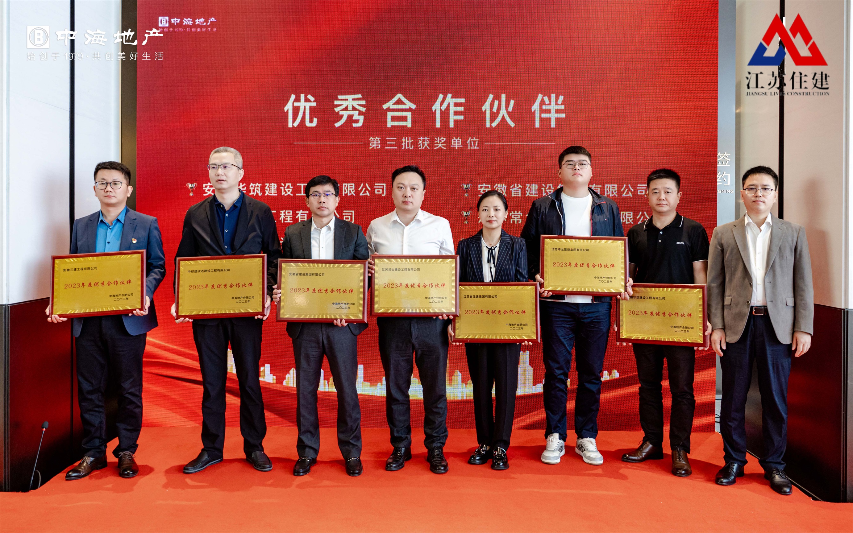 會議期間,中海地產(chǎn)合肥公司向2023年做出卓越貢獻(xiàn)的優(yōu)秀合作伙伴給予表彰頒獎,江蘇省住建集團(tuán)憑借與中海地產(chǎn)公司的深度合作和突出貢獻(xiàn),榮獲“2023年度優(yōu)秀合作伙伴獎”。